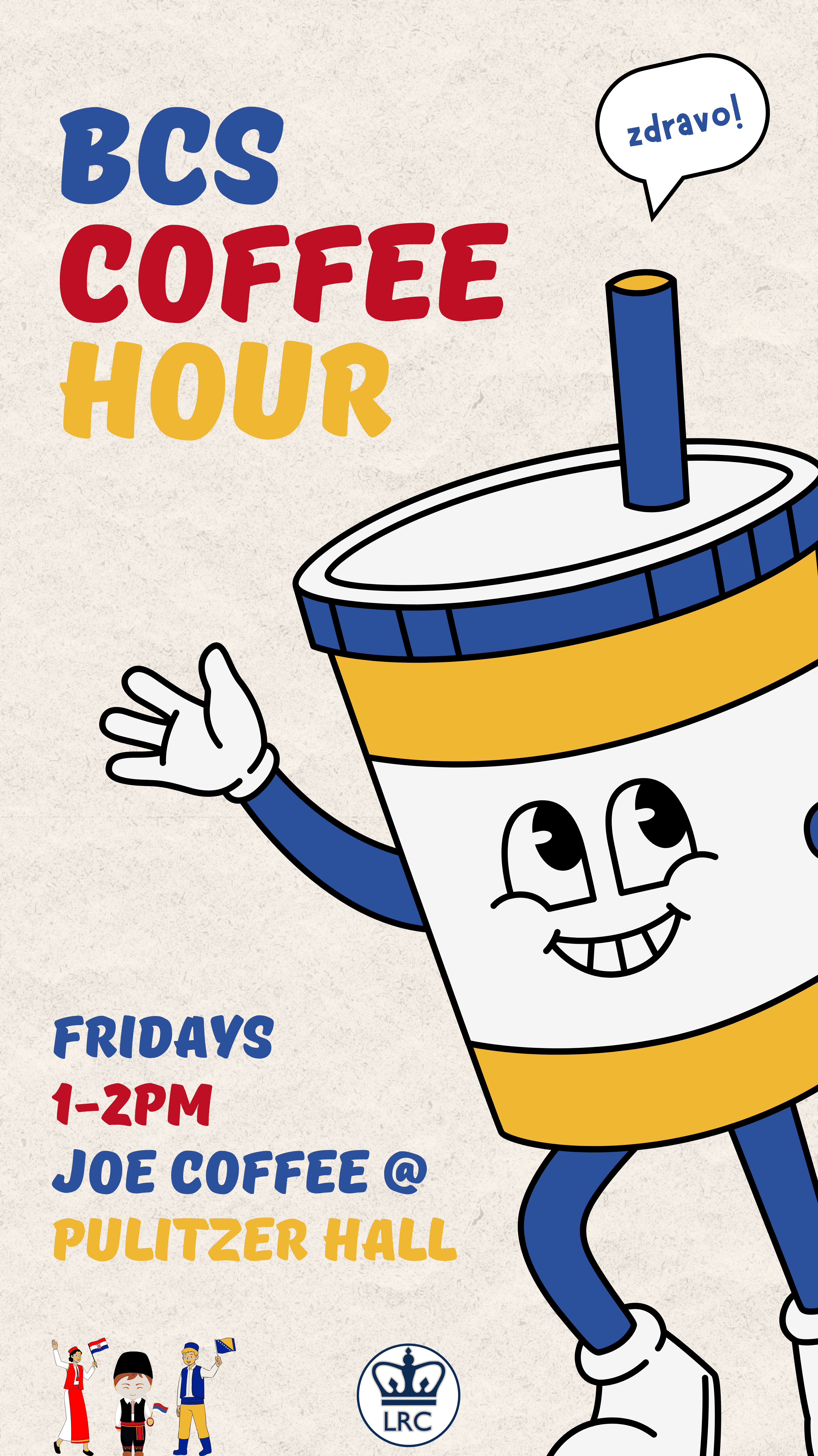 Fridays 1-2pm @ Joe’s Coffee (Pulitzer Hall location) Email ab3865@columbia.edu for more info. |