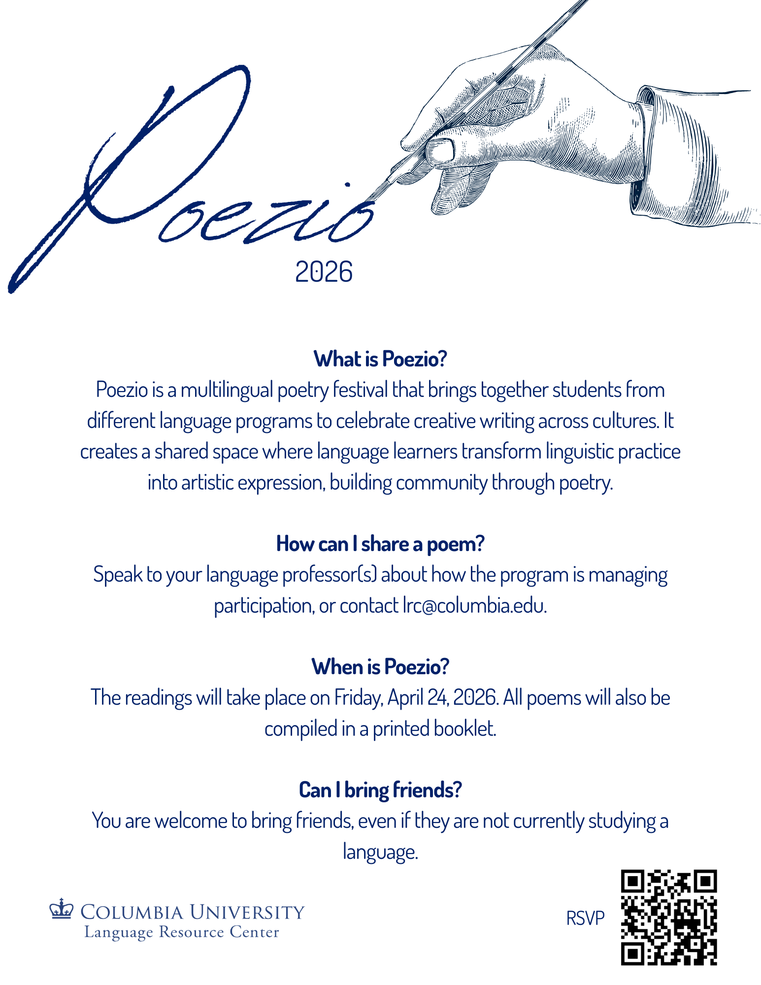 Poezio is a multilingual poetry festival that brings together students from different language programs to celebrate creative writing across cultures. It creates a shared space where language learners transform linguistic […]
